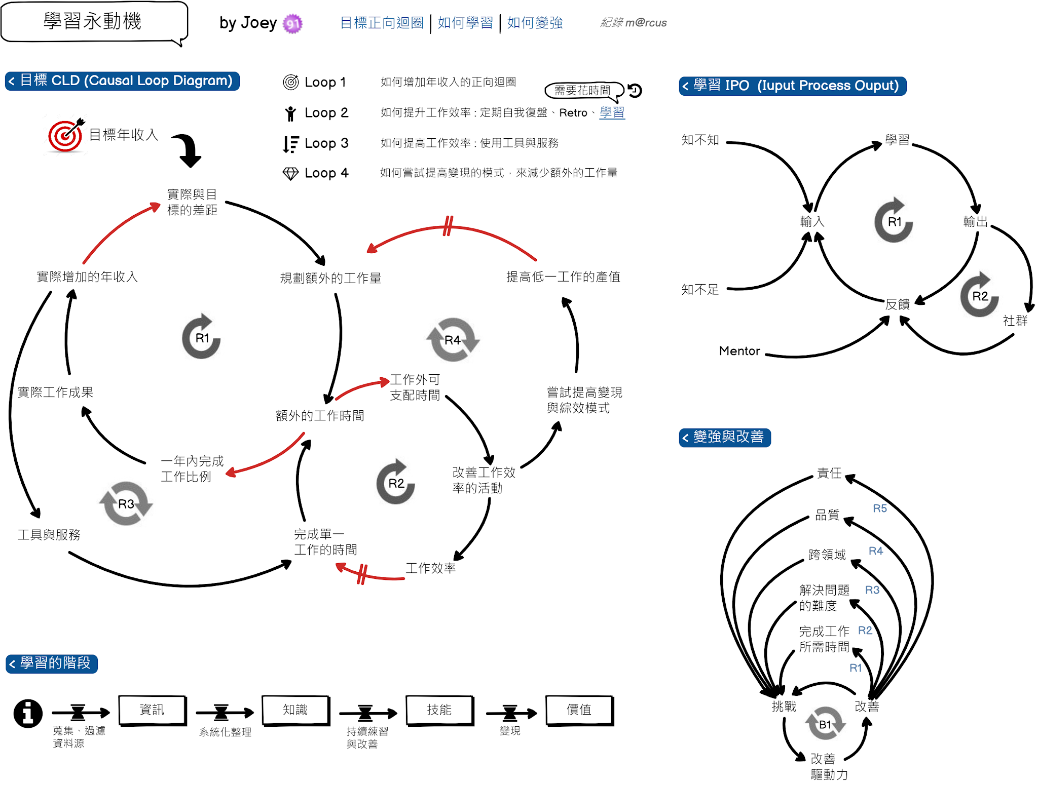 在後段有提到學習的階段,也就是從資訊整理為知識,知識精煉成技能,最後從技能變現出價值。
